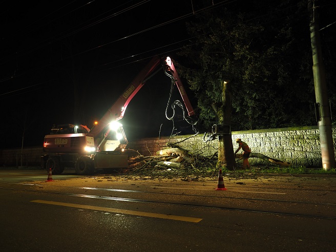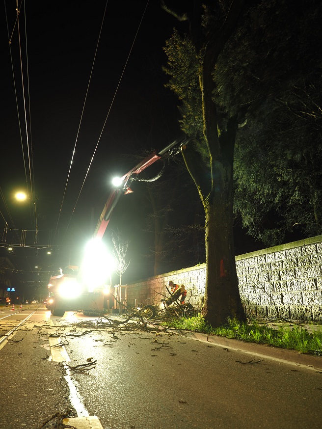 Dank einer sorgfältigen Planung und Vorbereitung in Zusammenarbeit mit der VBZ und der Stadt Zürich, konnten die Fällarbeiten während dem Nachteinsatz einwandfrei, sicher und problemlos ausgeführt werden.